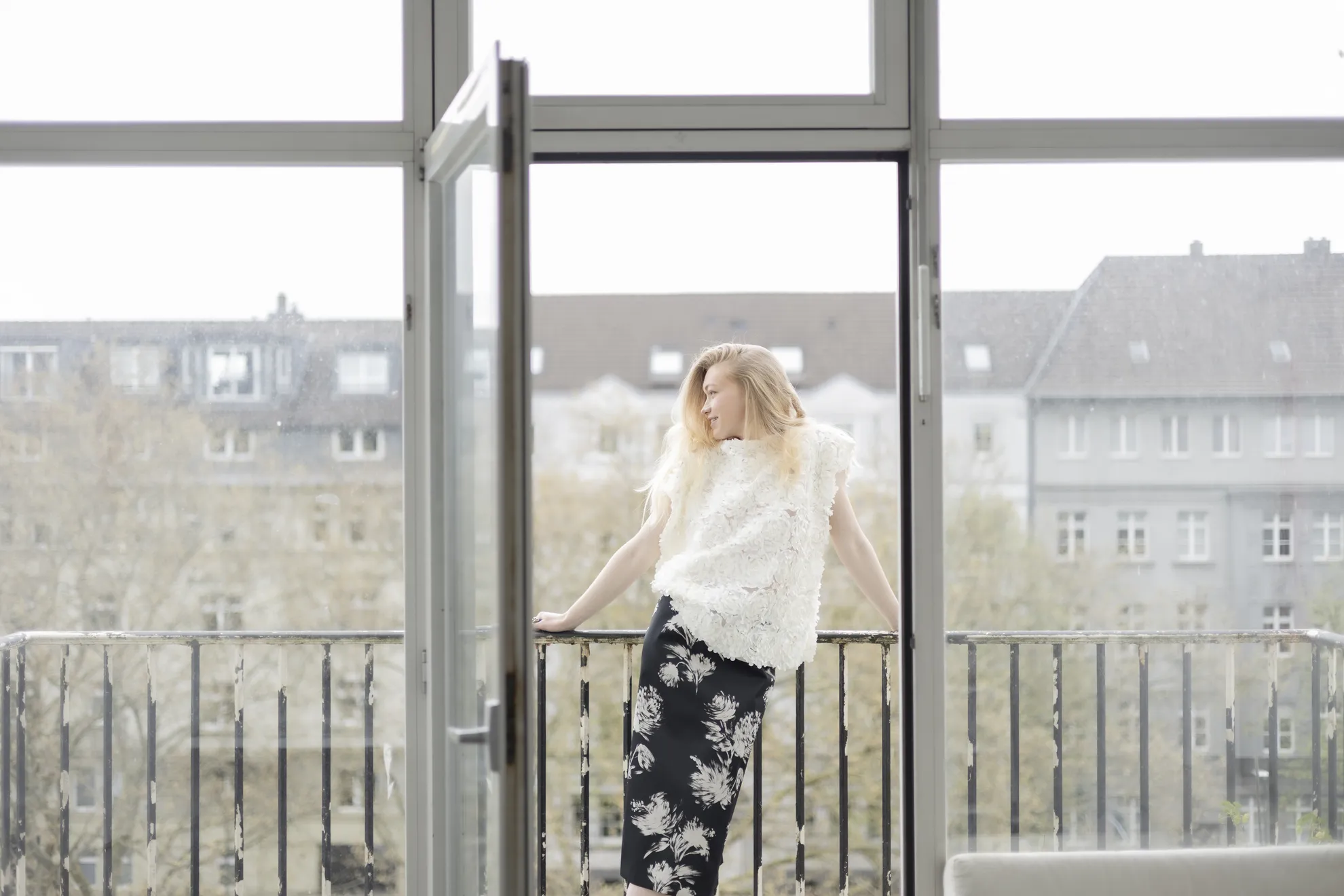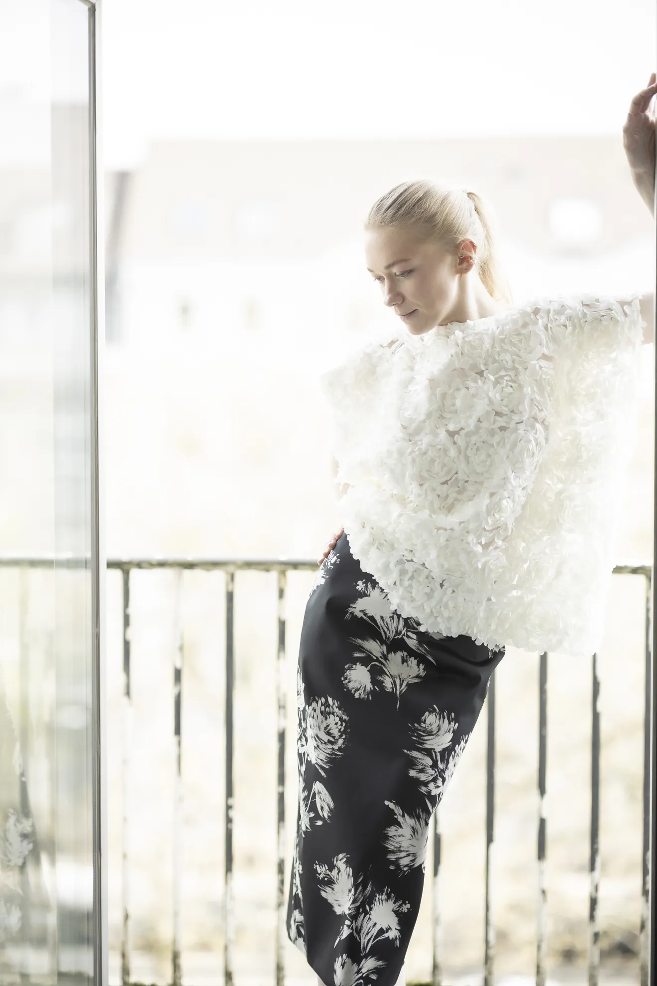 Oversized Oberteil mit Blütenapplikationen in 3D-Optik.