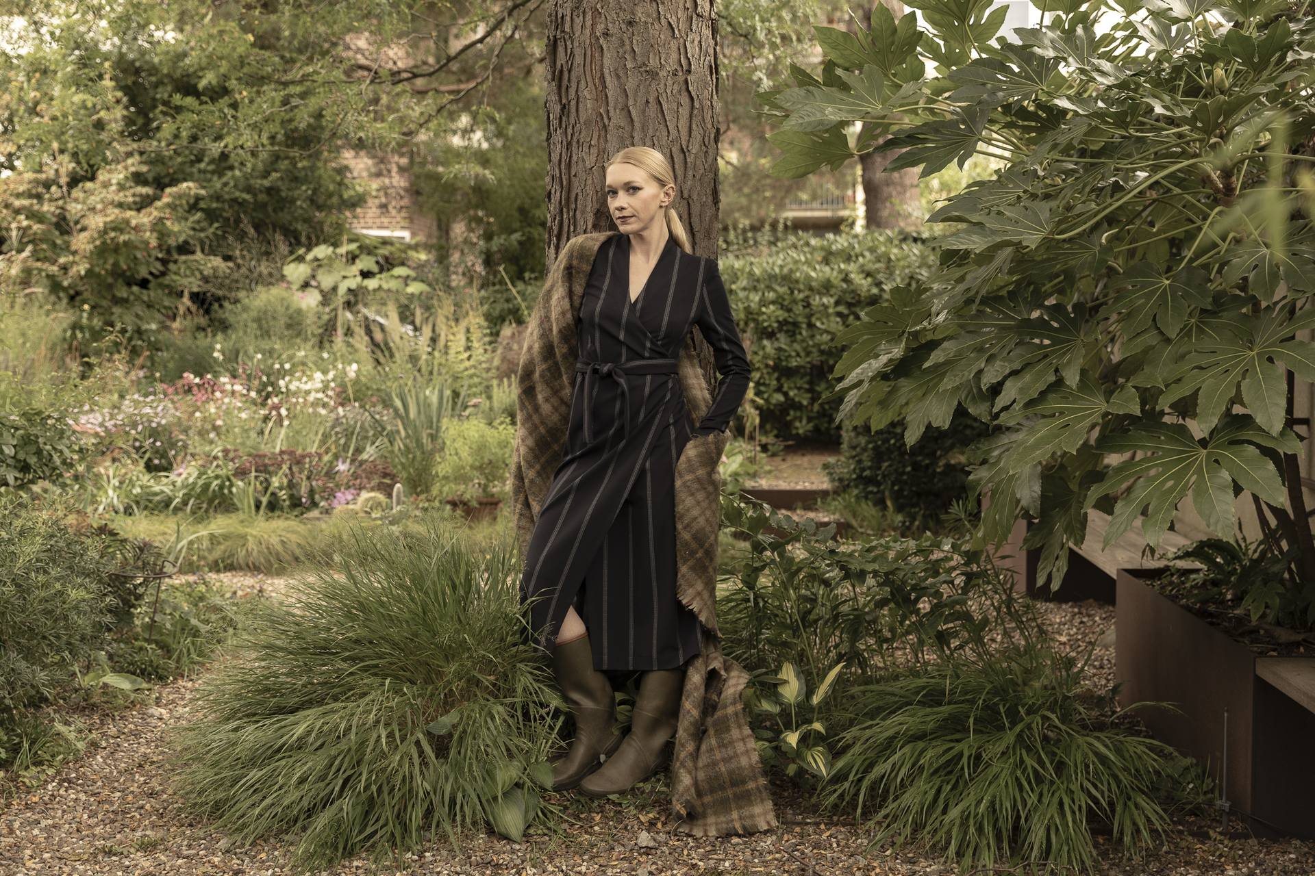 Schmeichelndes Wickelkleid aus nachtblauem